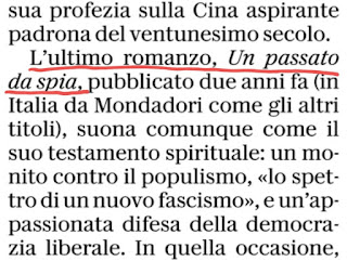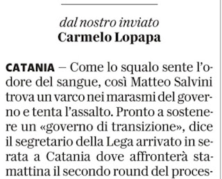 Ma detto tra de noi, qualcun ha capito perché oggi in prima pagina su quel giornalone di sinistra che è La Stampa c'era la lettera della figlia dell'imprenditore morto ammazzato da un fulmine letta al funerale? Co' tutto il rispetto pè sta fija eh ma vorei capire la scelta de LS.